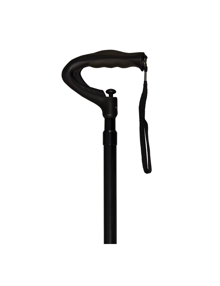 Bastone in allumino Nero con manico ergonomico, sul quale è inserito un pulsante che permette di regolare, in modo continuo, l'altezza desiderata.